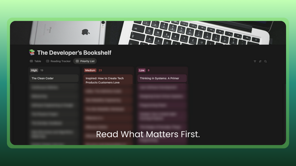 Developer’s Bookshelf is a curated growth system for software engineers and SaaS founders who don’t want to fail. It includes 50 handpicked books, a reading tracker, and a priority filter to cut through noise, focus on what matters, and measure progress. For $39.99, it’s a roadmap from apprentice to architect to founder—designed to save time, avoid mistakes, and accelerate growth.