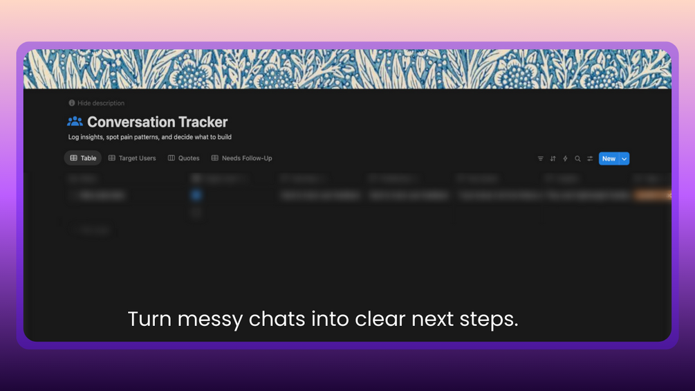 ✅ Conversation Tracker — log interviews, tag patterns, and know exactly what to build next
